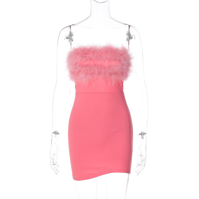 Hip-revealing short skirt tube top dress