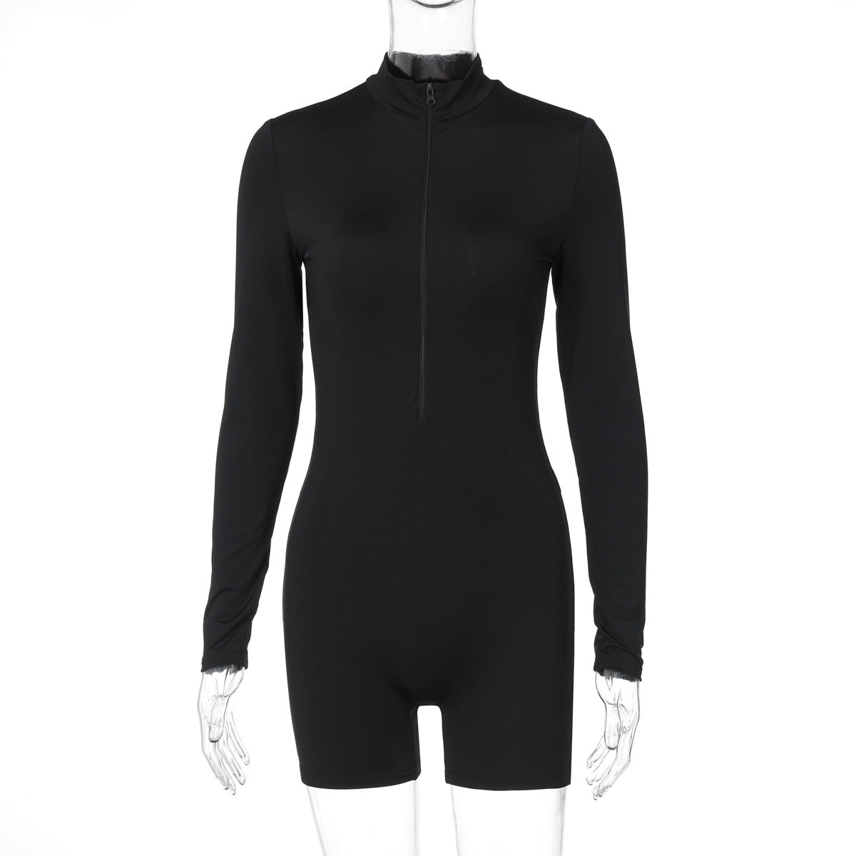 Long-sleeved high-neck zippered slim hip-lifting fashionable sports jumpsuit