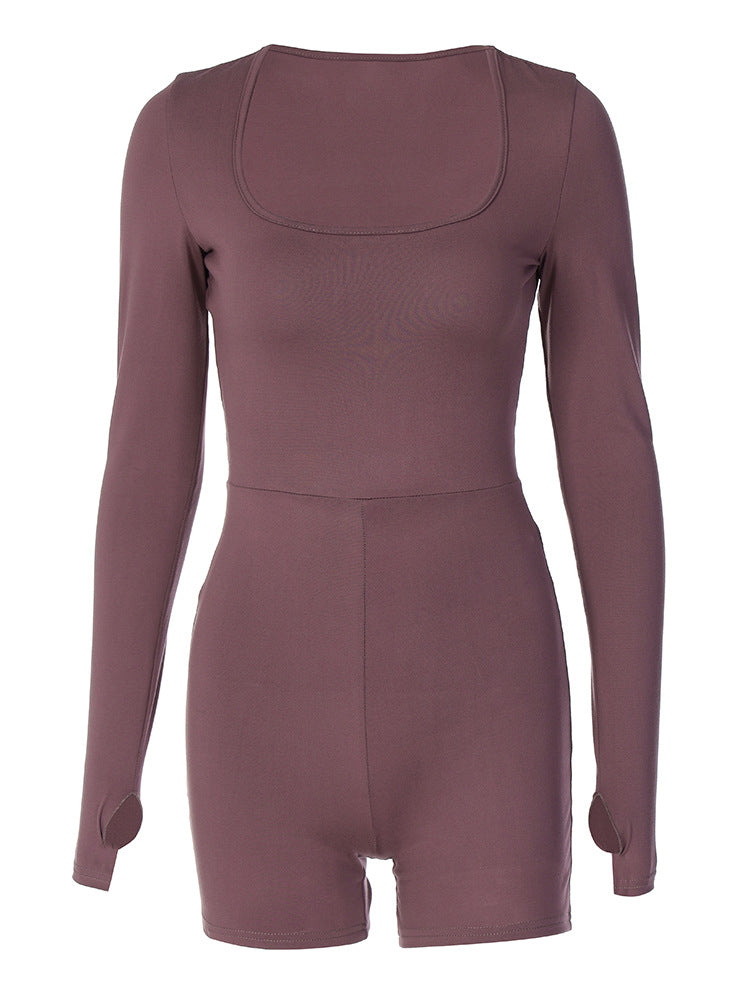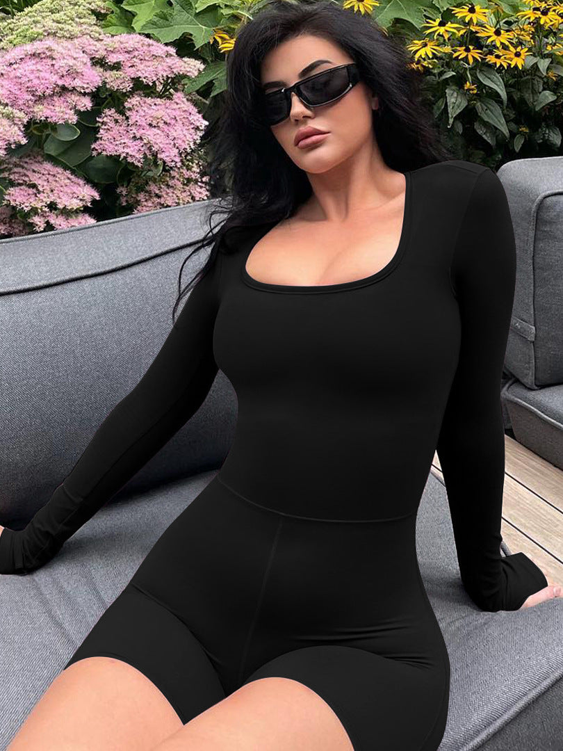 Long-sleeved U-neck hollow high-waist hip-lifting jumpsuit