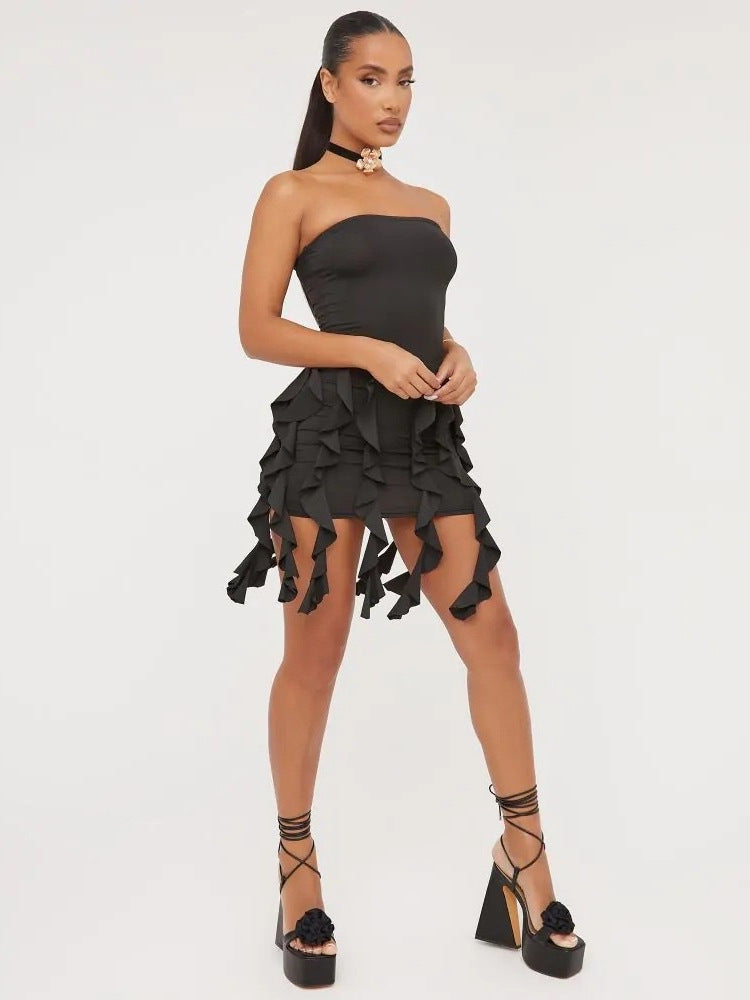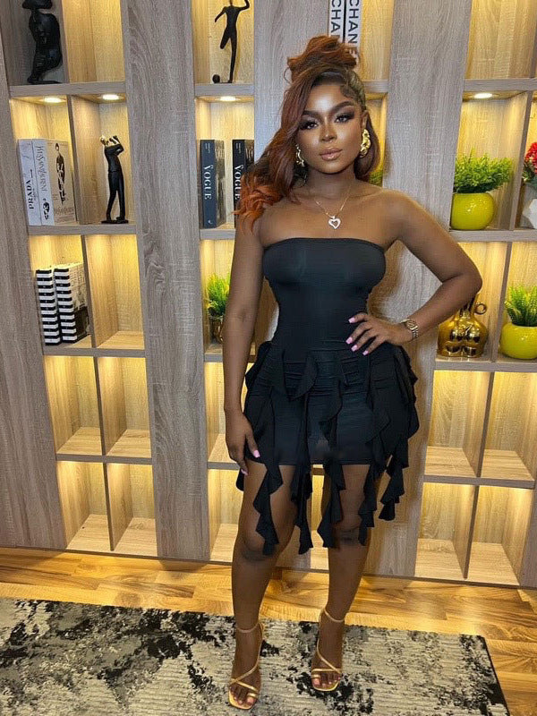 New fluttering strap breastplain sexy backless package hip ruffle dress women's clothing