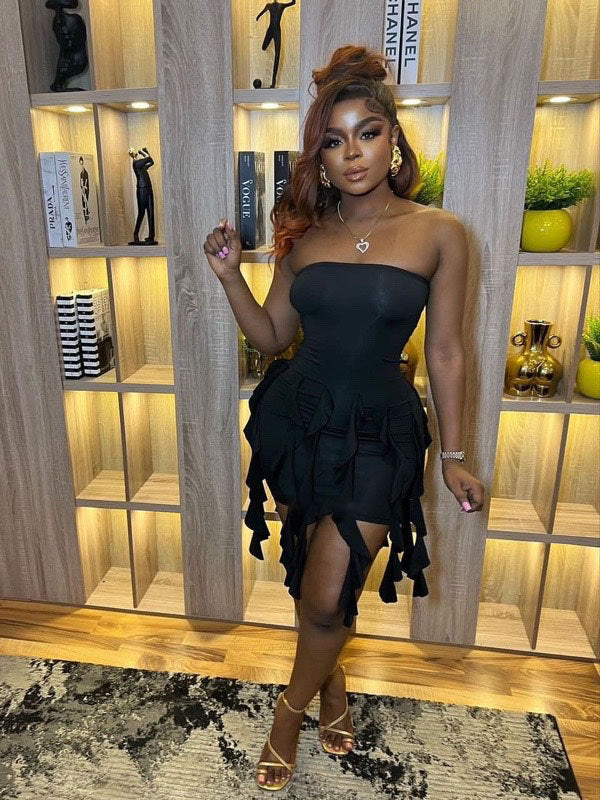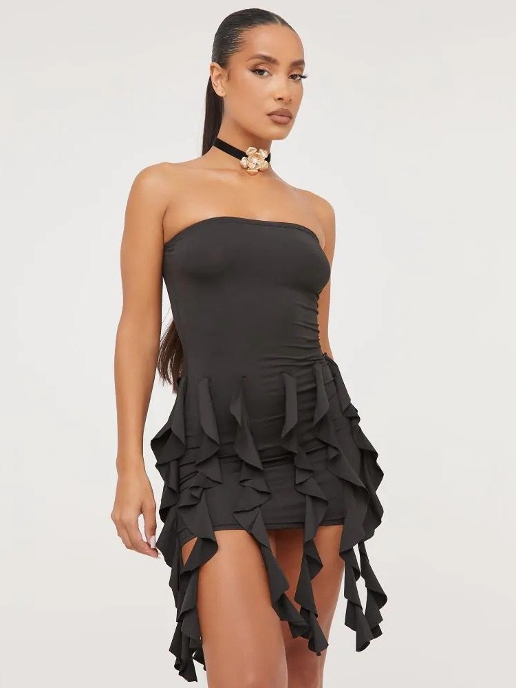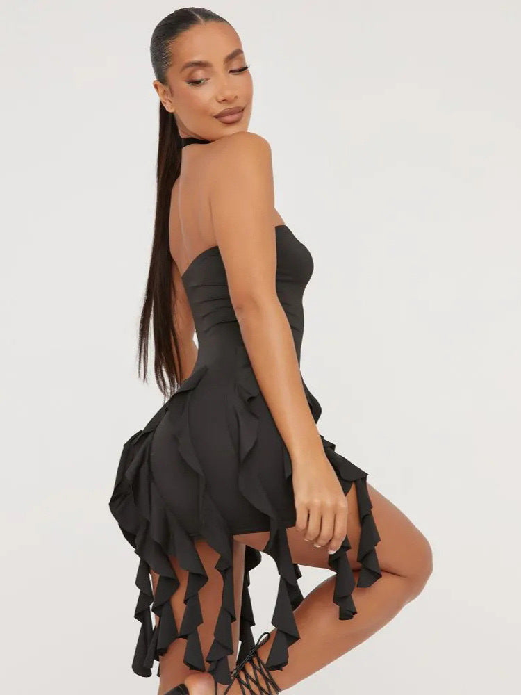 New Style Fluttering Bandage Breast Plate Sexy Backless Package Hip Ruffle Dress Women's