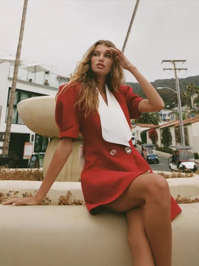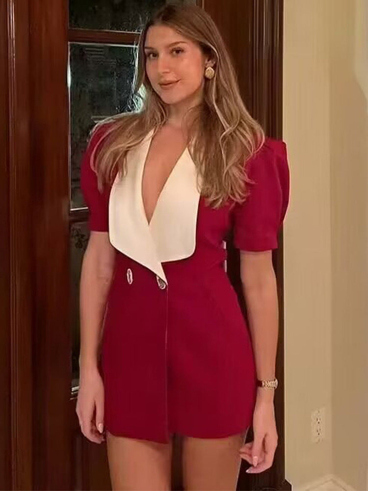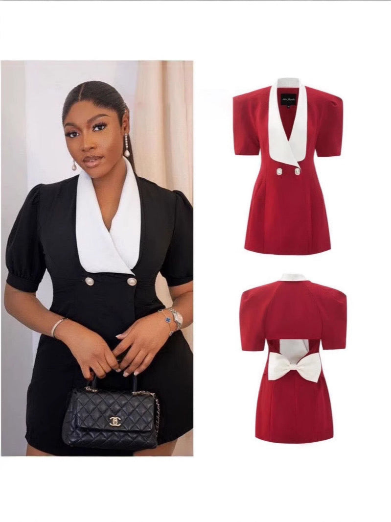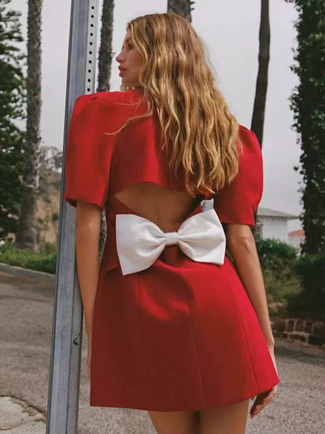 Temperament Suit Style Bow Embellished Backless Short Sleeve Dress